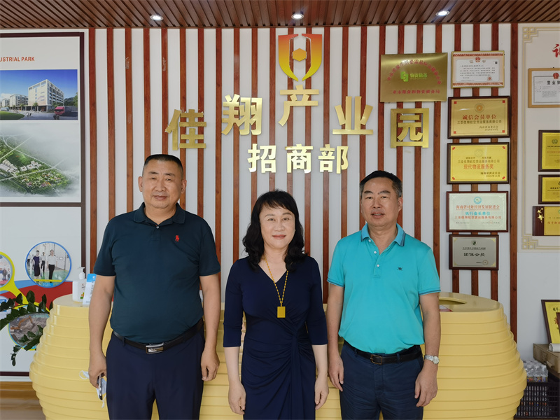 2021年6月8日,海南農(nóng)墾商貿(mào)物流產(chǎn)業(yè)集團(tuán)有限公司黨委書記、董事長林興、海南省冷鏈物流協(xié)會會長王鴻駿等一行蒞臨三亞佳翔物流產(chǎn)業(yè)小鎮(zhèn)參觀調(diào)研。